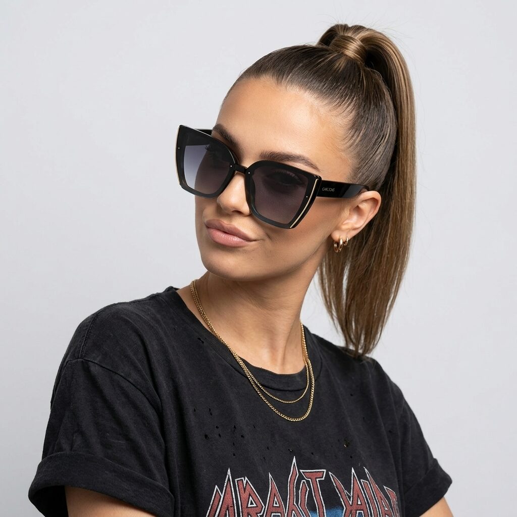 • Ponadczasowa oprawka w kształcie kocich oczu